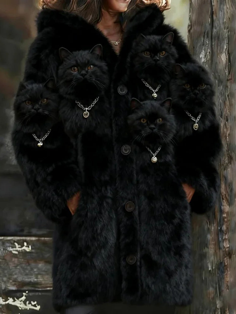 Damska ciepła kurtka z nadrukiem kota dla zwierząt