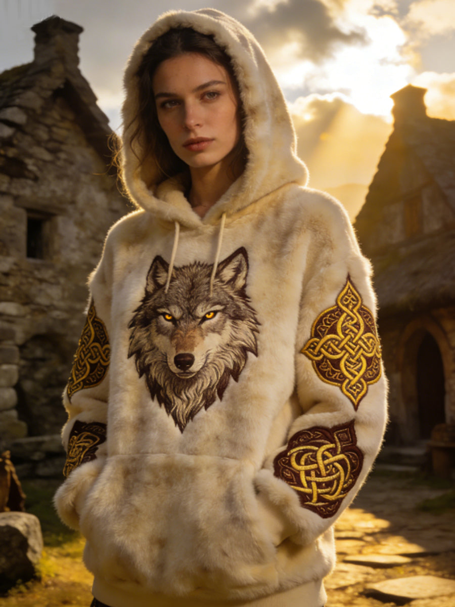 Damska Flanelowa bluza z kapturem w stylu celtyckiego wilka