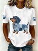 Damski jeansowy patchwork art jamnik wzór T-Shirt