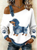 Damski piękny jamnik z denimowym patchworkiem