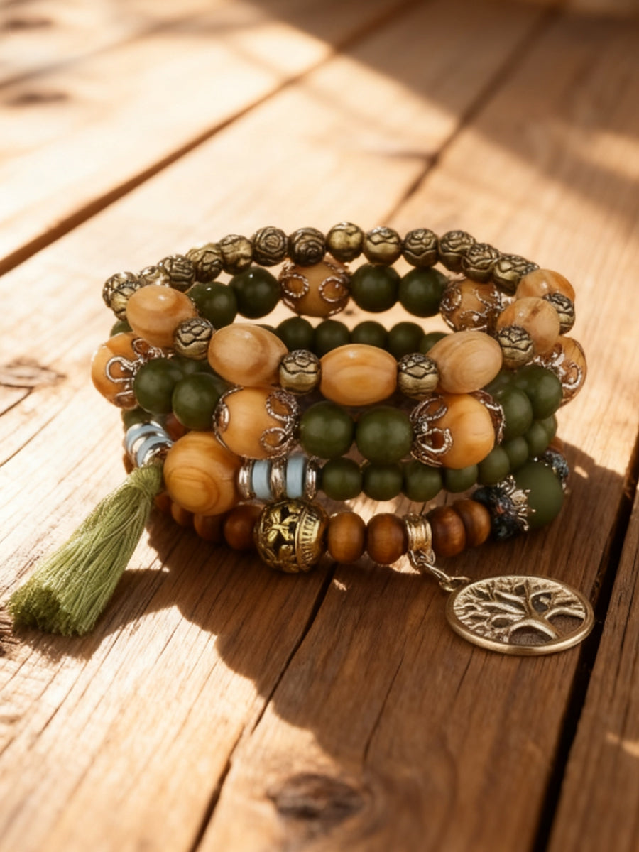 Damskie drzewo życia wikingów Bohemian wielowarstwowa drewniana bransoletka z koralików