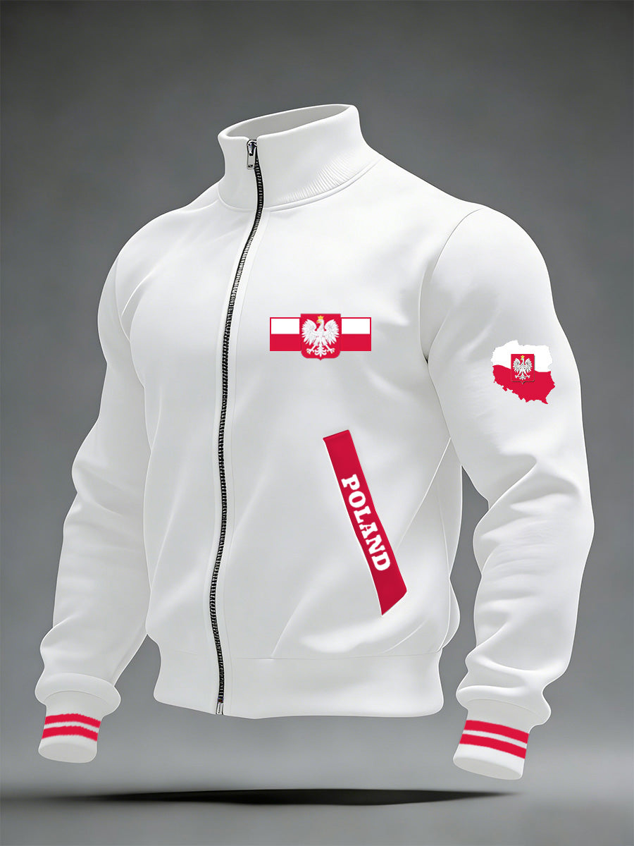 Męska kurtka z długim rękawem w kołnierzu z nadrukiem z polską flagą