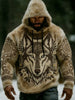 Męska Viking Vintage Wolf celtycka flanelowa ciepła bluza z kapturem
